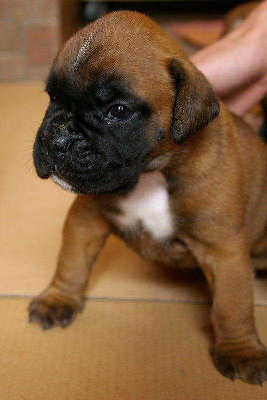 Zulinka odešla do nové rodiny 7.8. 2009 . Doma na ní čeká boxeří kamarádka Bára.